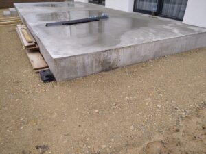 Plokštuminiai pamatai Panevėžio raj. išvedžiotas grindinis šildymas ir išbetonuota.