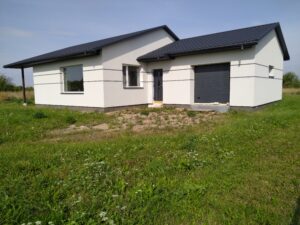 140m2 gyvenamojo namo statyba Panevėžio r. Gręžtiniai pamatai. Akyto betono blokeliai, stogas Ruukki skarda. Su dekoratyvinio tinko apdaila.