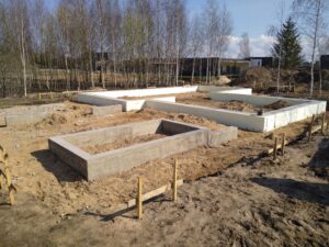 Gęžtinių pamatų betonavimas Panevėžio r. iš Finnfoam klojinių gyvenamiesiems namams.