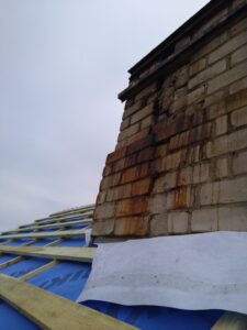 Kamino permūrijimas virš stogo Panevėžio rajone. Po permūrijimo